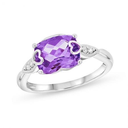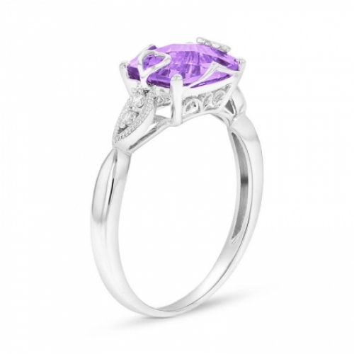 Средние характеристики: аметист фиолетовый, размер: 9x7 мм, огранка Кушон (подушка); круглый бриллиант