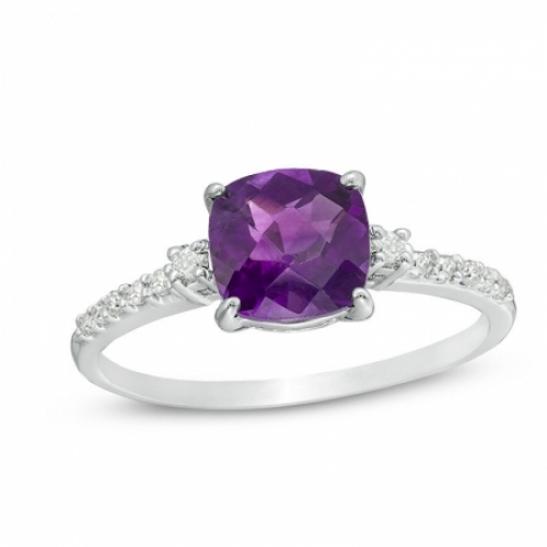 Средние характеристики: аметист фиолетовый, размер: 7 мм, огранка Кушон (подушка); круглый бриллиант