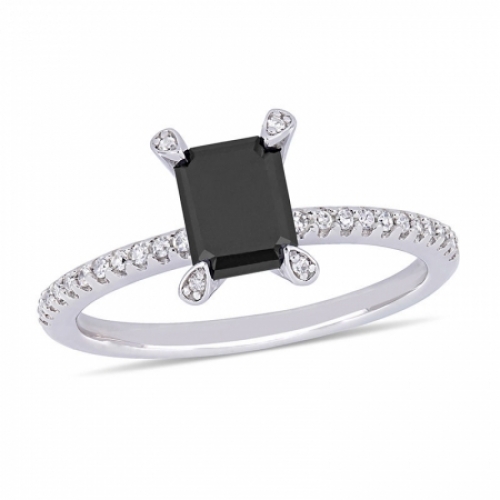 Женское кольцо из белого золота 585 пробы с черными и белыми бриллиантами