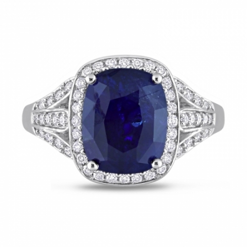 Средние характеристики: сапфир голубой, размер: 10.23x8.22 мм, огранка Кушон (подушка); круглый бриллиант