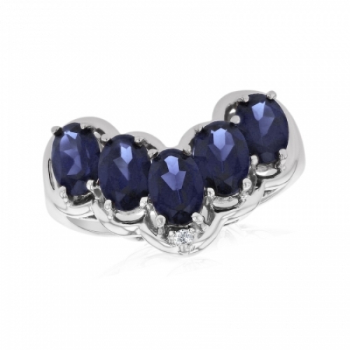 Женское кольцо из белого золота 585 пробы с сапфиром и бриллиантами