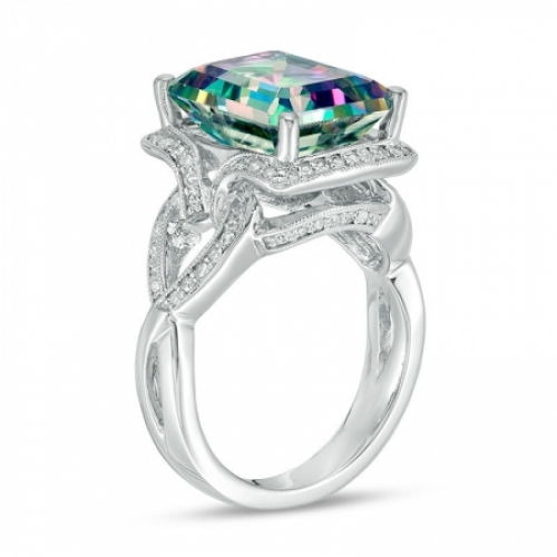 Средние характеристики: топаз разноцветный, размер: 12x10 мм, огранка Октагон; круглый бриллиант