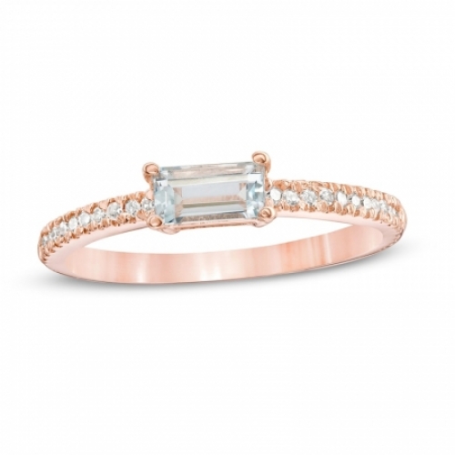 Средние характеристики: аквамарин голубой, размер: 6x3 мм, огранка Багет; круглый бриллиант