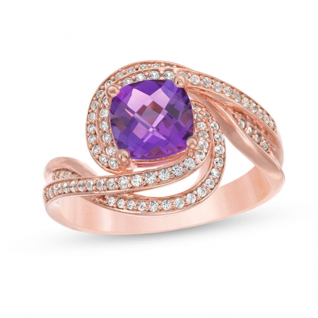 Средние характеристики: аметист фиолетовый, размер: 7 мм, огранка Кушон (подушка); круглый бриллиант