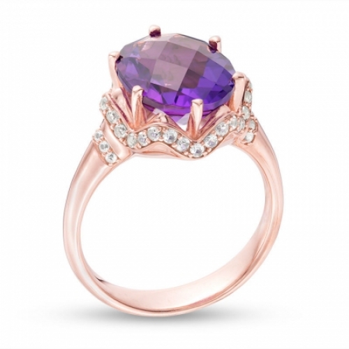 Средние характеристики: аметист фиолетовый, размер: 12x10 мм, огранка Овал; круглый бриллиант