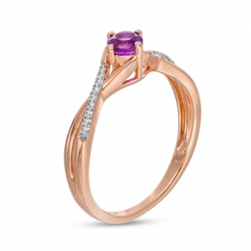 Женское кольцо из красного золота 585 пробы с аметистом и бриллиантом