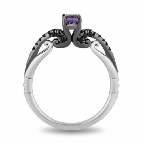 Средние характеристики: аметист фиолетовый, размер: 6x4 мм, огранка Овал; круглый черный бриллиант