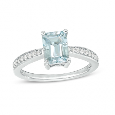 Средние характеристики: аквамарин голубой, размер: 8x6 мм, огранка Октагон; круглый белый сапфир гт диаметром 1 мм