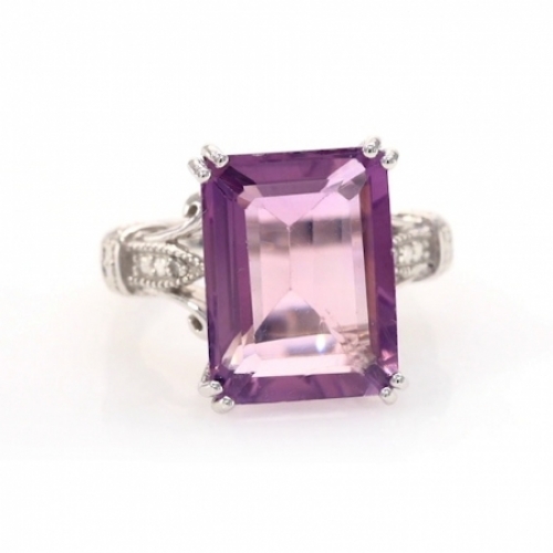 Средние характеристики: аметист фиолетовый, размер: 16x12 мм, огранка Октагон; круглый бриллиант