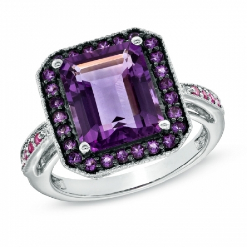 Средние характеристики: аметист фиолетовый, размер: 11x9 мм, огранка Багет; аметист, размер: 1.5 мм, огранка Круг; сапфир гт розовый, размер: 1.5 мм, огранка Круг