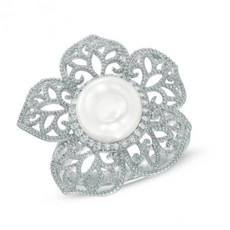 Средние характеристики: жемчуг белый, размер: 9 мм, огранка Круг; круглый бриллиант