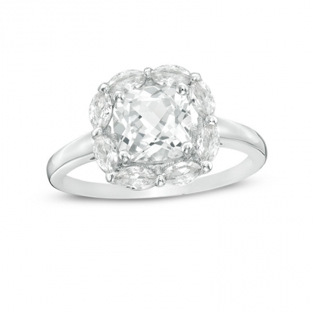 Средние характеристики: белый сапфир гт, размер: 7 мм, огранка Кушон (подушка); белый сапфир гт, размер: 4x2 мм, огранка Маркиз