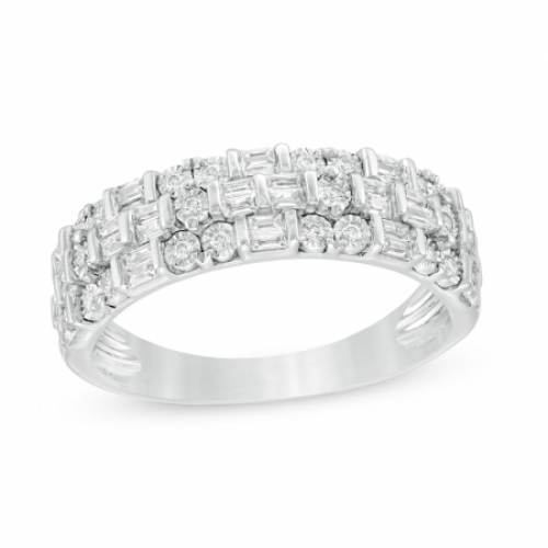 Средние характеристики: круглый белый бриллиант, цвет/чистота: 3/5; бриллиант, огранка Багет