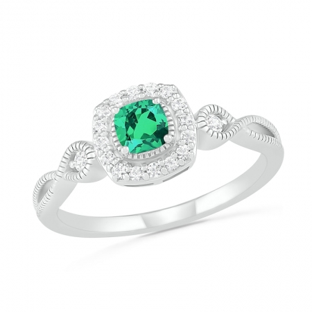 Средние характеристики: изумруд гт зеленый, размер: 4 мм, огранка Кушон (подушка); круглый белый сапфир гт диаметром 1.2 мм; круглый белый сапфир гт диаметром 1.5 мм