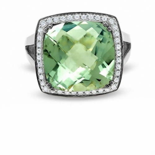 Средние характеристики: кварц, размер: 14 мм, огранка Кушон (подушка); круглый бриллиант