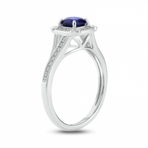 Средние характеристики: сапфир гт голубой, размер: 6 мм, огранка Кушон (подушка); круглый бриллиант