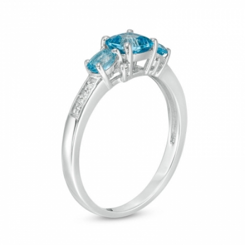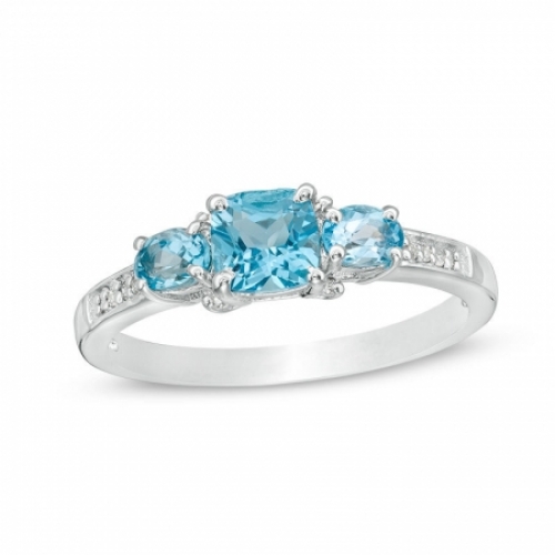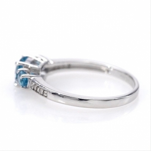 Средние характеристики: топаз голубой, размер: 5 мм, огранка Кушон (подушка); топаз голубой, размер: 4x3 мм, огранка Овал; круглый белый бриллиант