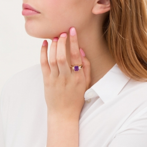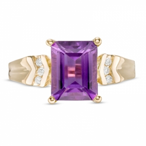 Средние характеристики: аметист фиолетовый, размер: 9x7 мм, огранка Октагон; круглый бриллиант