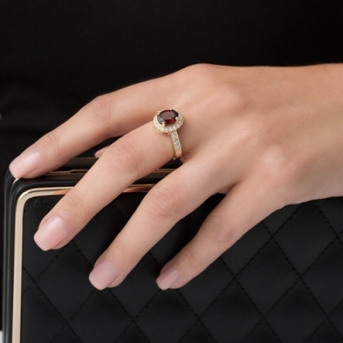 Отзывы о Женское кольцо из желтого золота 585 пробы с гранатом и бриллиантами
