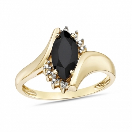Средние характеристики: оникс черный, размер: 10x5 мм, огранка Маркиз; круглый бриллиант