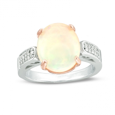 Средние характеристики: опал белый, размер: 12x10 мм, огранка Овал; круглый бриллиант
