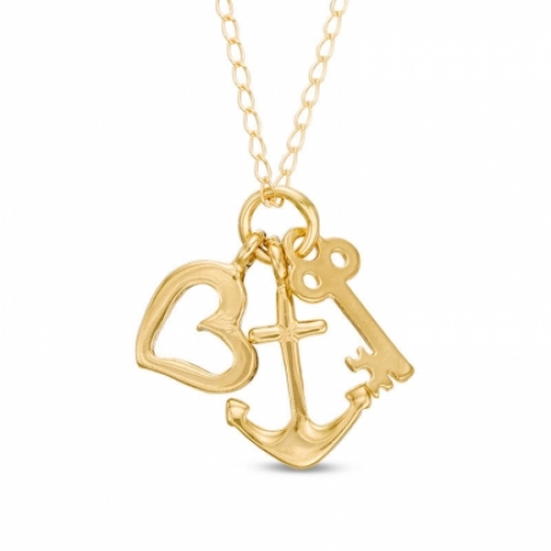 Колье Сердце Якорь и Ключ из желтого золота 585 пробы