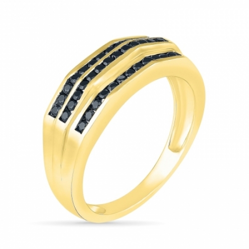 Мужское кольцо из желтого золота 585 пробы с черными и белыми бриллиантами