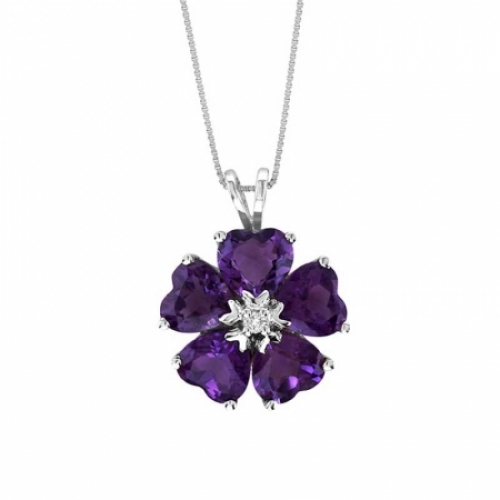 Средние характеристики: аметист фиолетовый, размер: 6 мм, огранка Сердце; круглый бриллиант