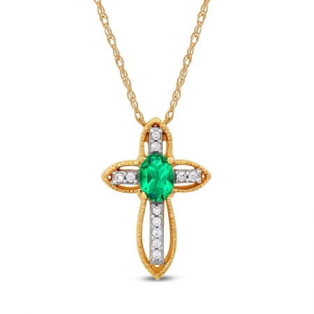 Крестик из желтого золота 585 пробы с изумрудом и бриллиантами