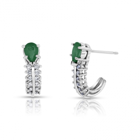 Серьги из белого золота 585 пробы с изумрудом и бриллиантами