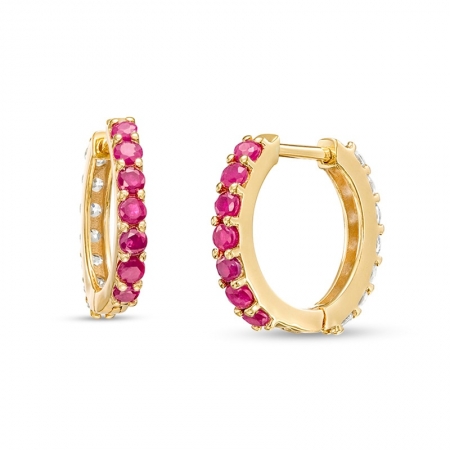 Серьги из желтого золота 585 пробы с рубином и белым сапфиром