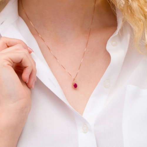 Средние характеристики: рубин красный, размер: 7x5 мм, огранка Груша; круглый бриллиант