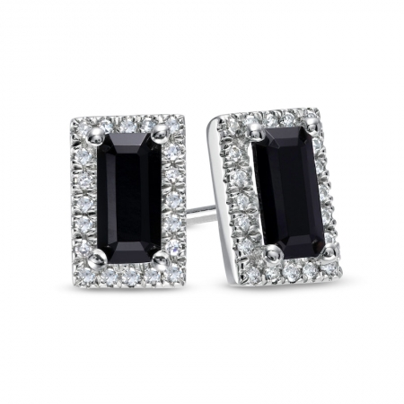 Средние характеристики: оникс черный, размер: 6x3 мм, огранка Багет; круглый бриллиант