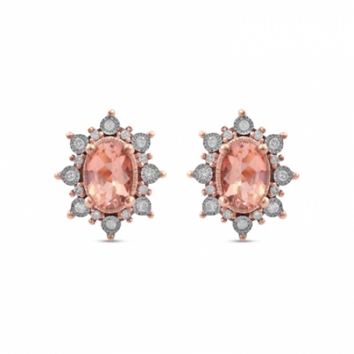 Серьги-гвоздики из красного золота 585 пробы с морганитом и бриллиантами