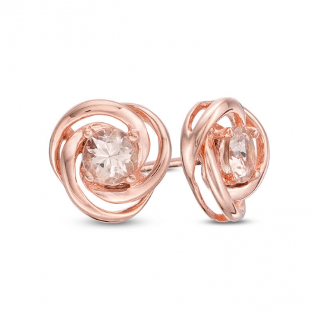 Серьги-гвоздики из красного золота 585 пробы с морганитом