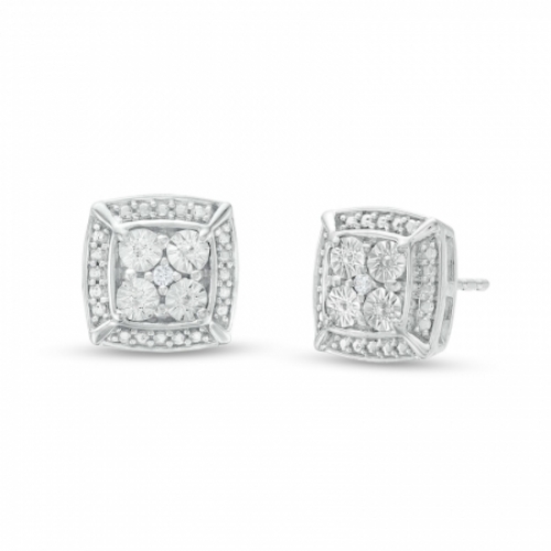 Серьги-гвоздики из серебра квадратной формы с бриллиантом