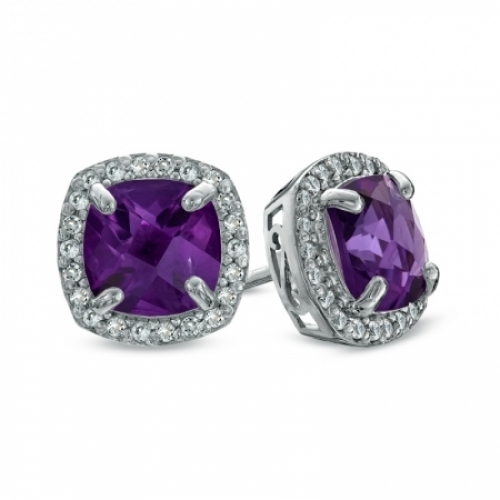 Отзывы о Серьги-гвоздики из серебра с аметистом и белым сапфиром
