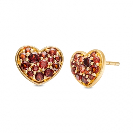 Серьги-гвоздики из желтого золота 585 пробы с гранатами