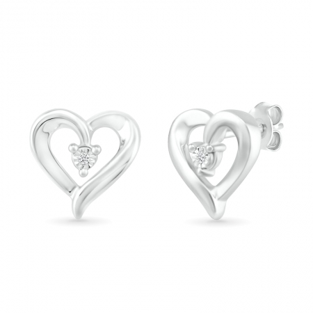 Серьги-гвоздики Сердечки из серебра с бриллиантом