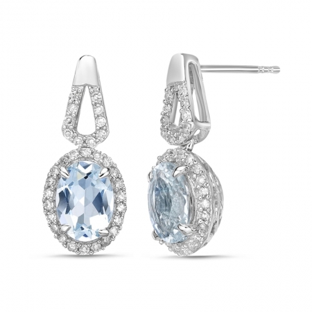Серьги из белого золота 585 пробы с аквамарином и бриллиантом