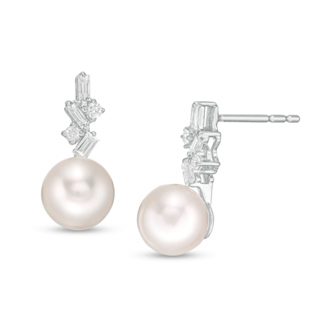 Средние характеристики: жемчуг белый, огранка Круг; бриллиант, огранка Багет; круглый белый бриллиант