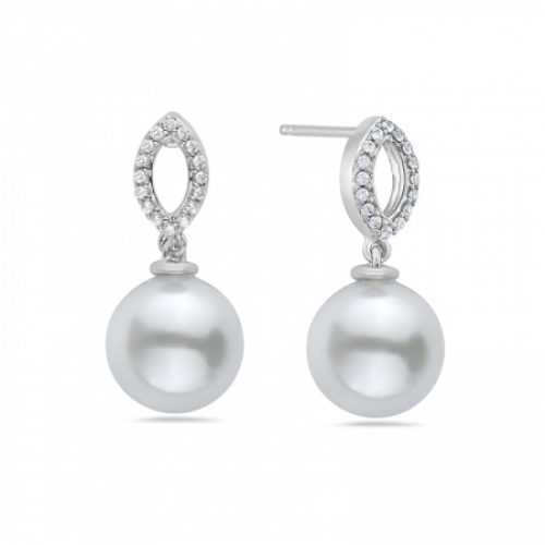 Серьги из белого золота 585 пробы с белым жемчугом и бриллиантом