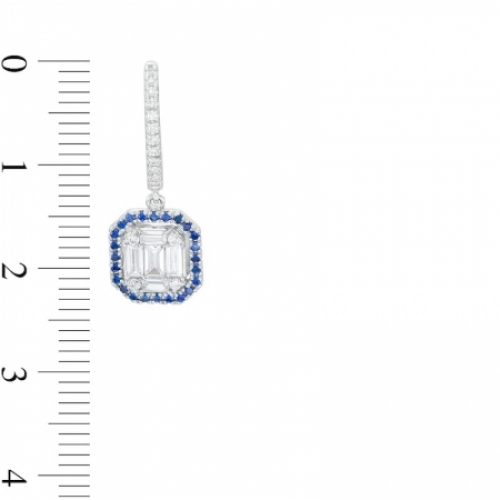 Средние характеристики: бриллиант белый, огранка Багет; круглый бриллиант; голубой сапфир, размер: 0.9 мм, огранка Круг