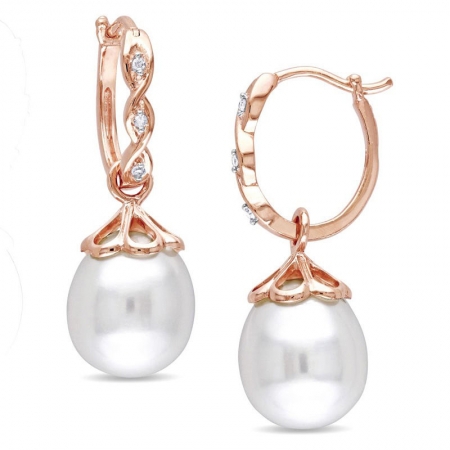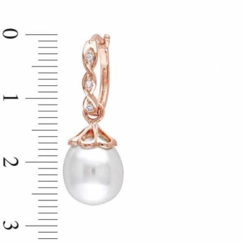 Средние характеристики: жемчуг белый, размер: 9x9.5 мм; круглый бриллиант