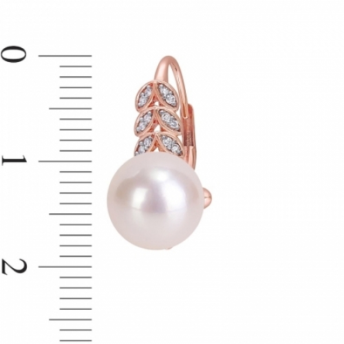 Серьги из красного золота 585 пробы с белым жемчугом и бриллиантом