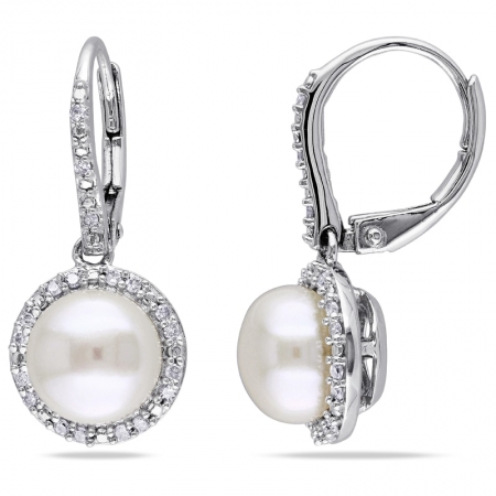 Средние характеристики: жемчуг белый, размер: 8x8.5 мм, огранка Круг; круглый бриллиант
