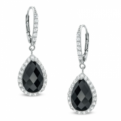 Средние характеристики: оникс черный, размер: 12x8 мм, огранка Груша; белый сапфир гт, размер: 1.5 мм, огранка Круг