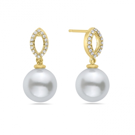 Серьги из желтого золота 585 пробы с белым жемчугом и бриллиантом