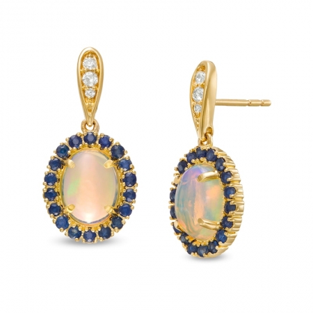 Средние характеристики: опал белый, размер: 8x6 мм, огранка Овал; сапфир голубой, размер: 1.5 мм, огранка Круг; круглый белый бриллиант