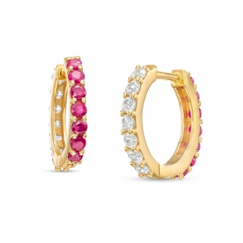 Серьги из желтого золота 585 пробы с рубином и белым сапфиром